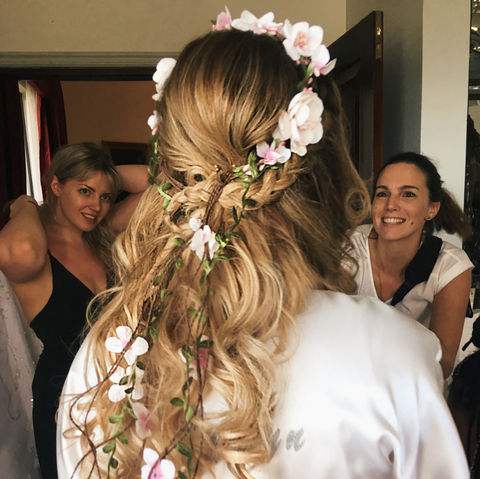 We offer full wedding day hair and make up services on site for bride and bridal party, for a larger bridal party i bring along my team of hair and makeup artists.